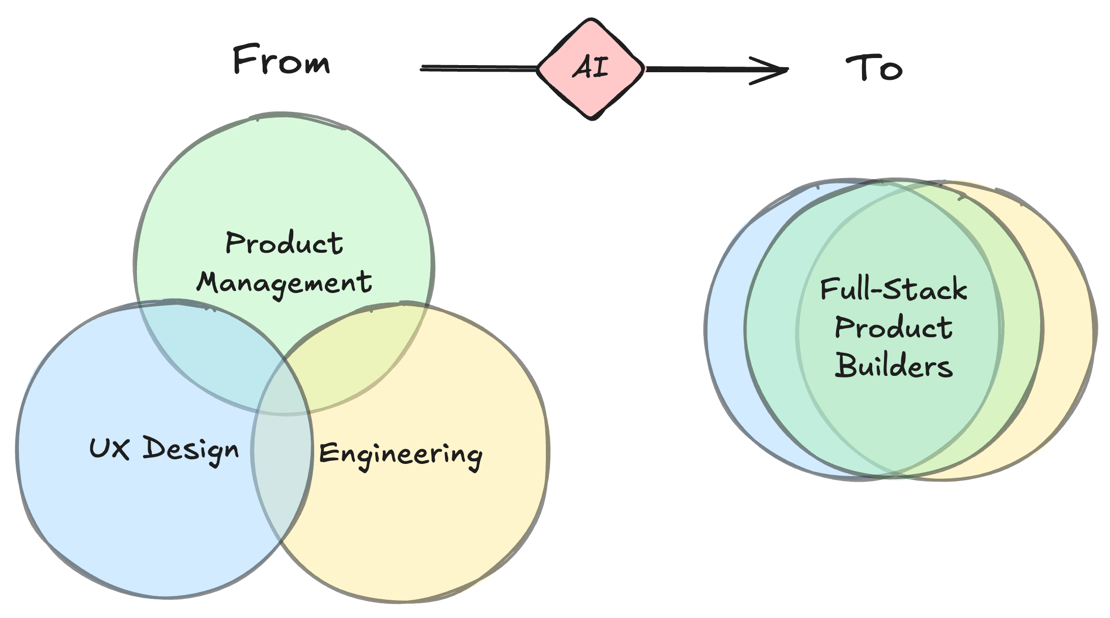 If our hypothesis is correct we should see a convergence of skills into a single profile. That convergence can come from any direction. Today, our focus is on PMs developing engineering and design skills to become full-stack product builders.