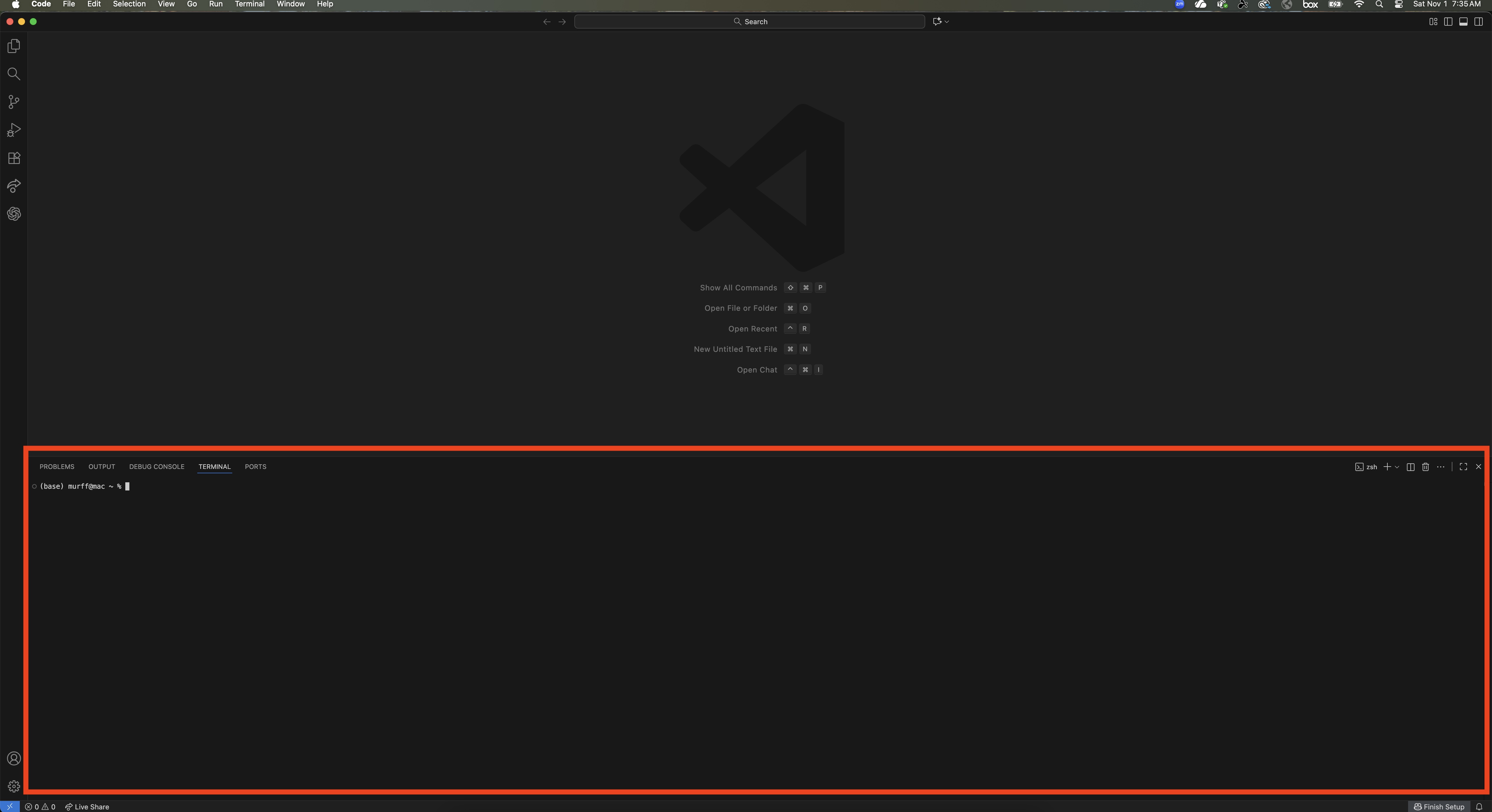 Run one of the following commands inside the VS Code terminal, depending on your operating system: